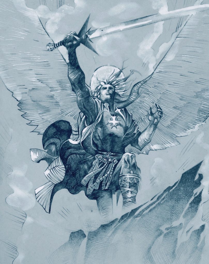 „Archangel Michael“ pen ink gouache 2022 © Sara Heinrich