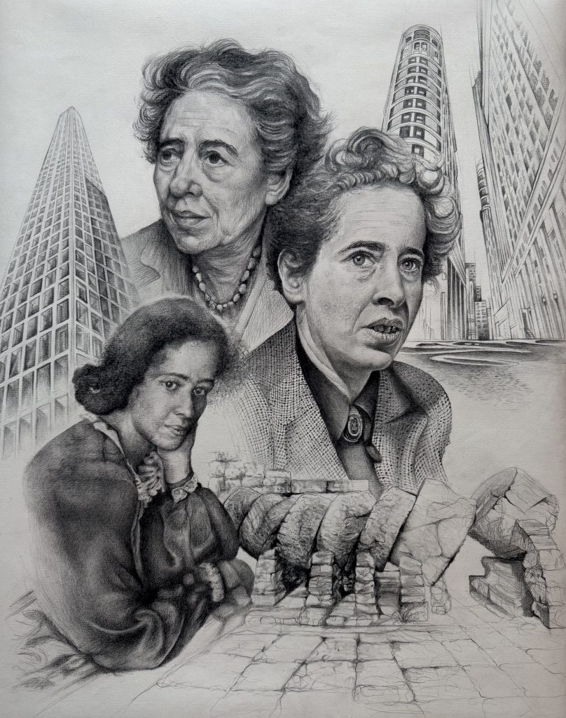 „Hannah Arendt Portrait“ charcoal pencil © Sara Heinrich
