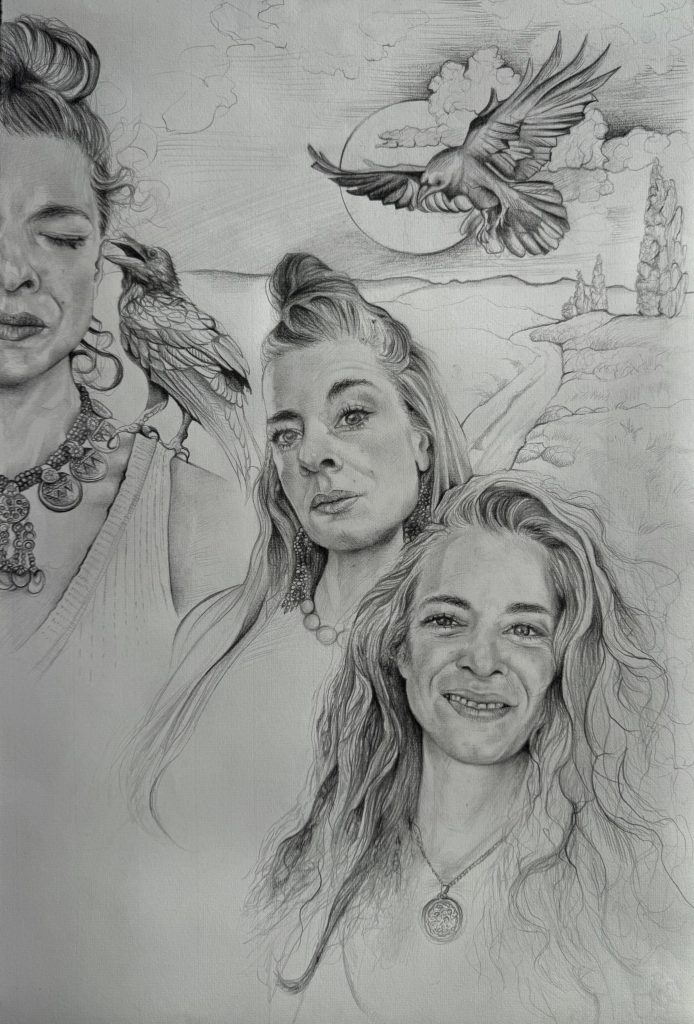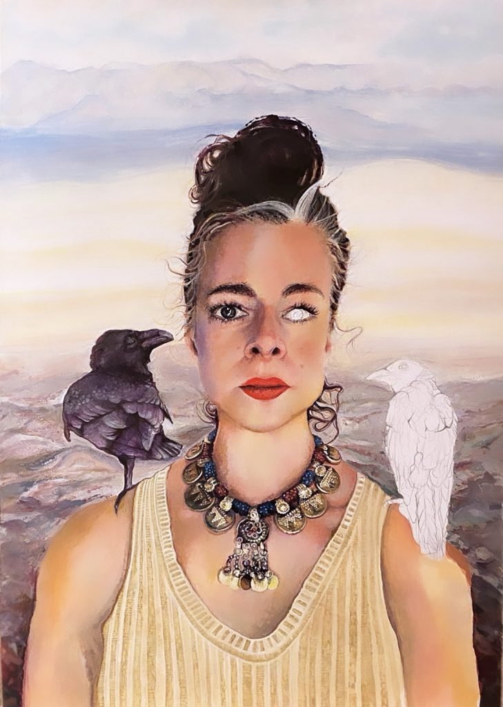 „Odins daughter Self-portrait in progress“ gouache 2023 © Sara Heinrich